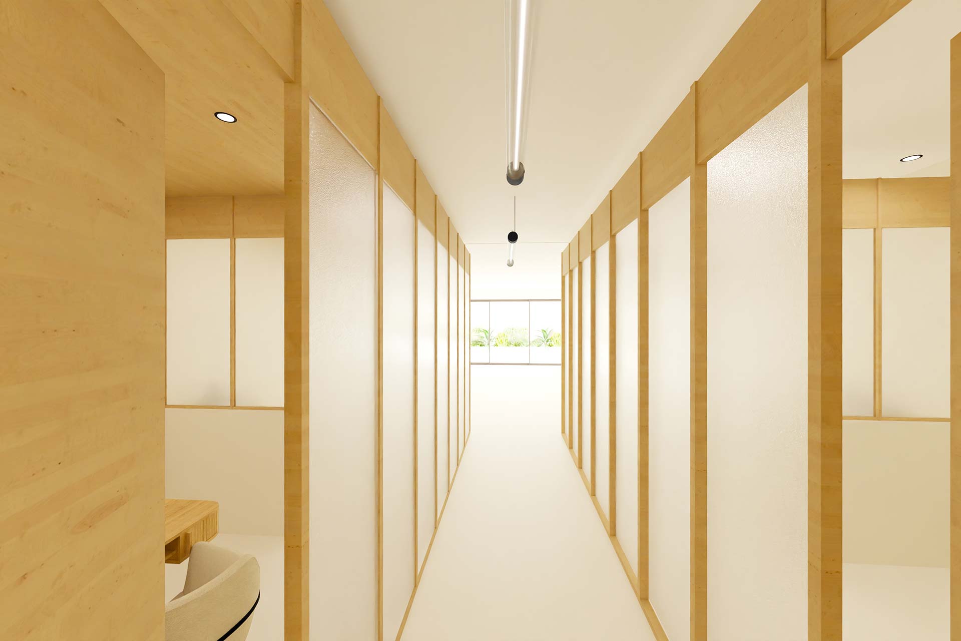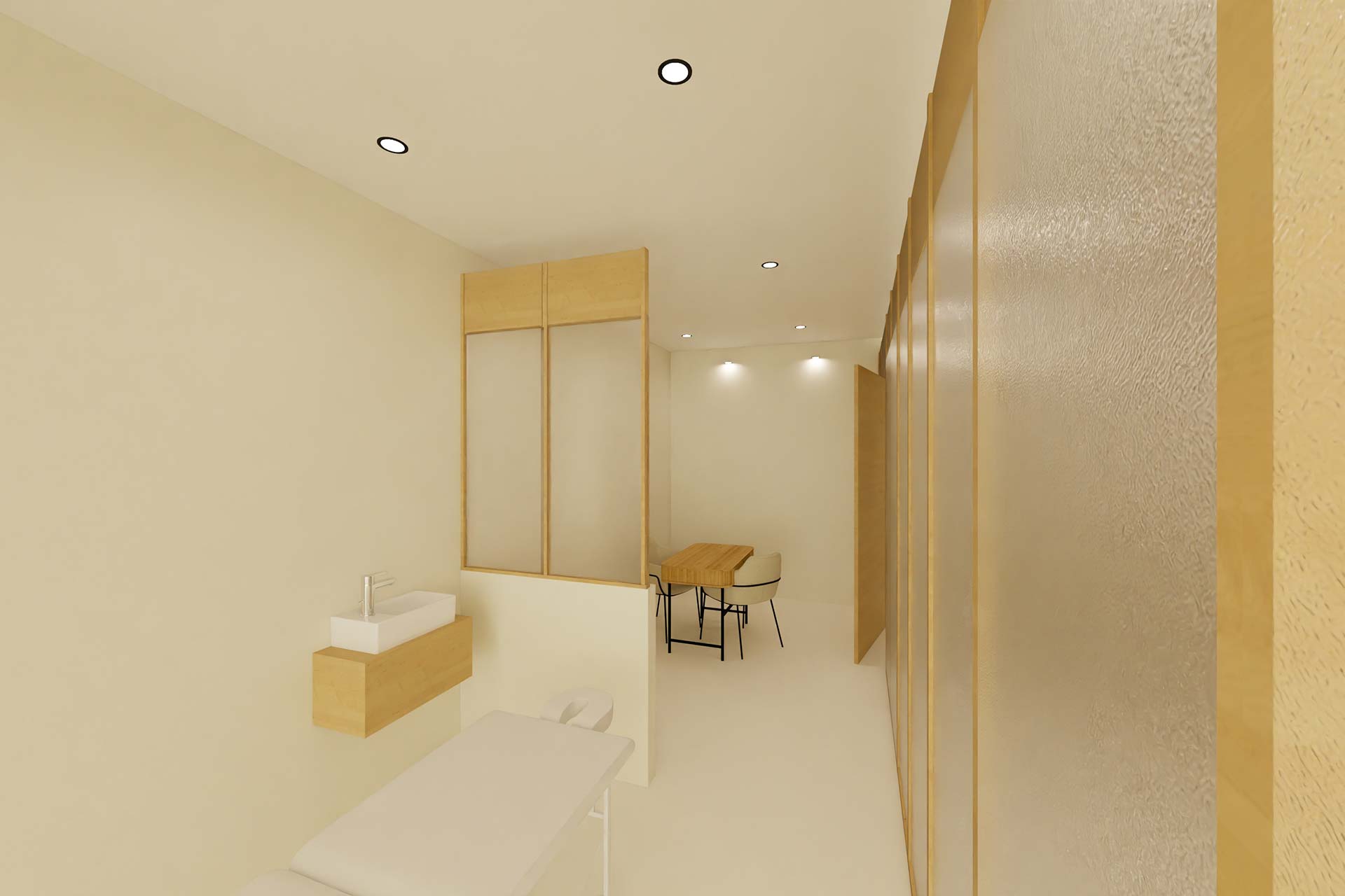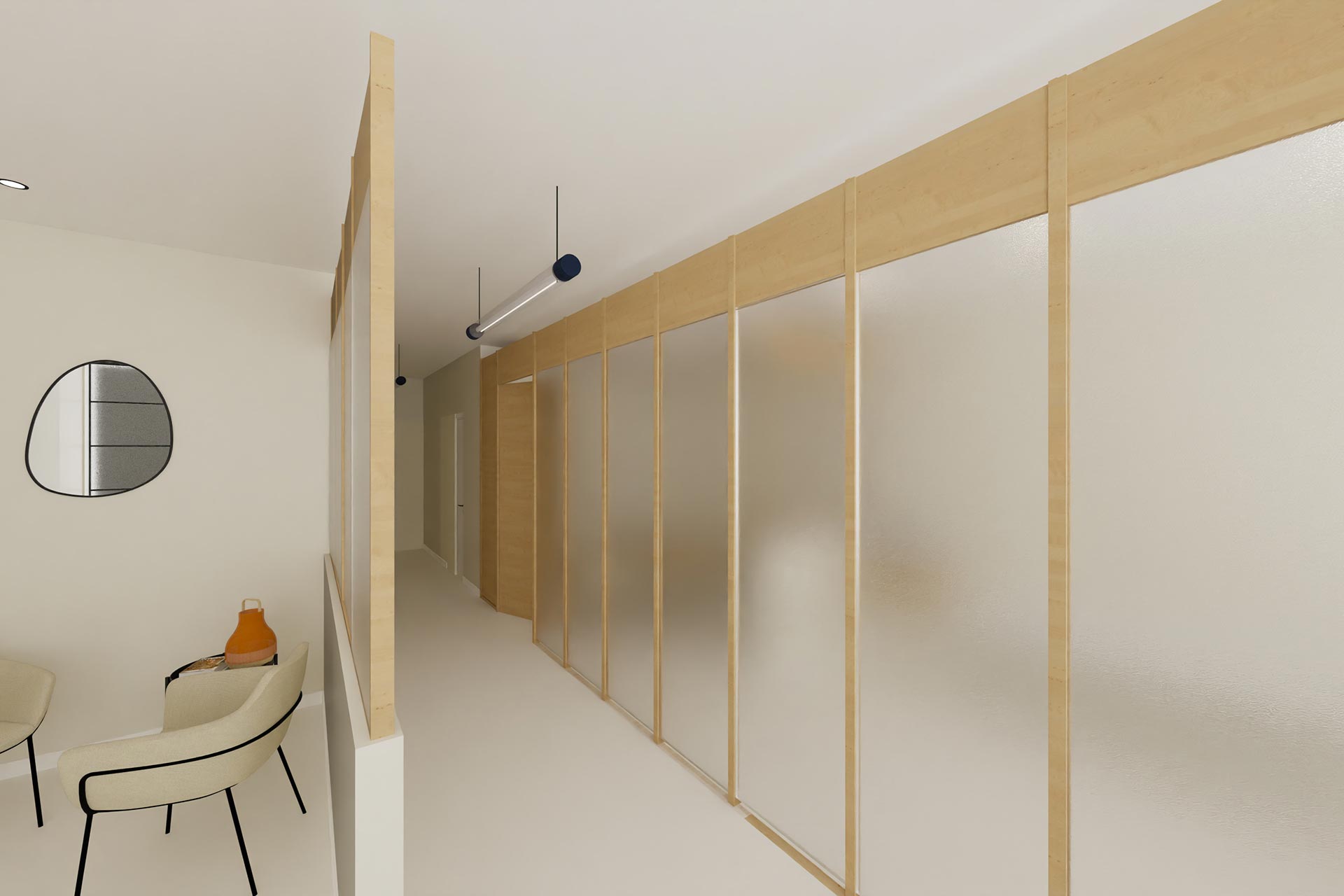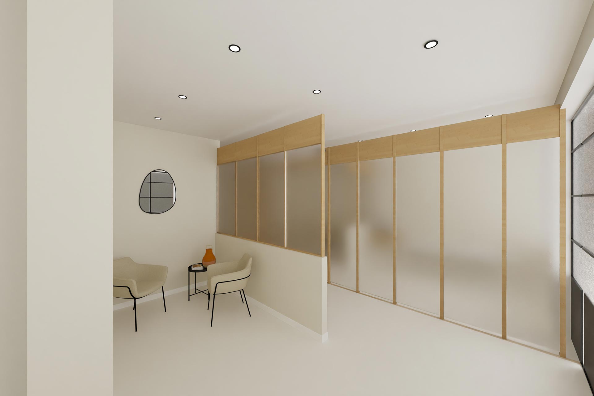 Ce projet permet de revaloriser un bâtiment doté d’une identité forte mais ayant perdu son usage, en le transformant et en l’adaptant à ses nouveaux besoins. Les espaces de consultation, lumineux et ouverts, offrent un cadre apaisant, où la circulation de la lumière naturelle et la transparence des cloisons contribuent à un environnement accueillant et fonctionnel idéal pour un cadre paramédical.