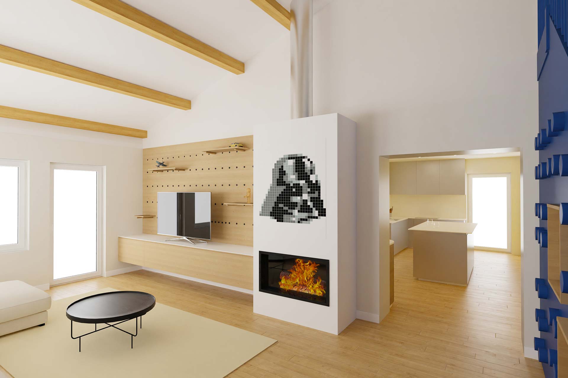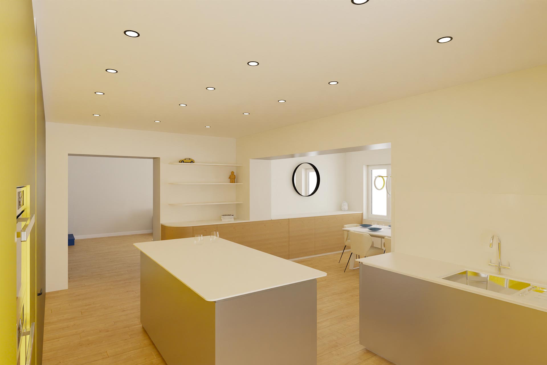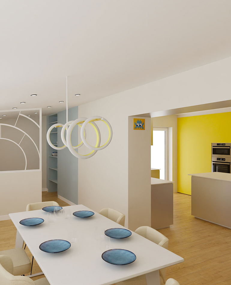 Le projet met en avant un intérieur où les volumes dialoguent avec fluidité et où chaque espace trouve naturellement sa place, alliant confort, singularité et fonctionnalité.
